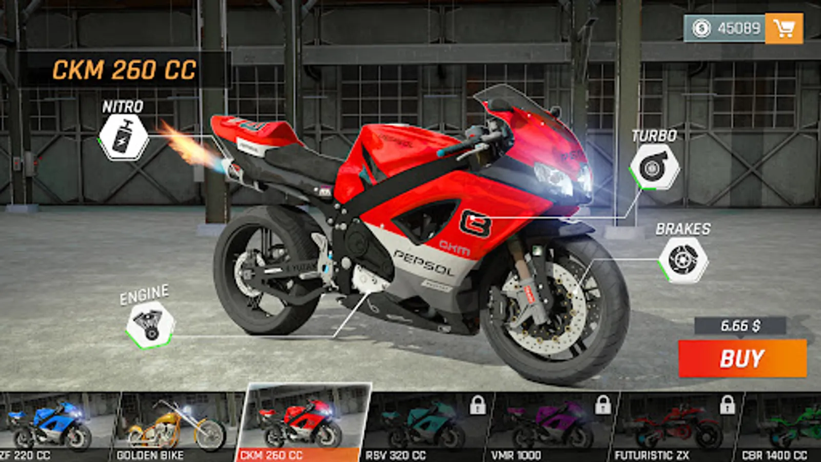 Download this thrilling and amazing motorcycle game and experience the excitement and thrill of driving a super motorbike through a massive stadium, on the highway, and on ramps and deserts which are filled with bumps and jumps.