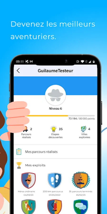 Evolve your adventurer profile by completing challenges in your treasure hunts and geocaching to get rewards!