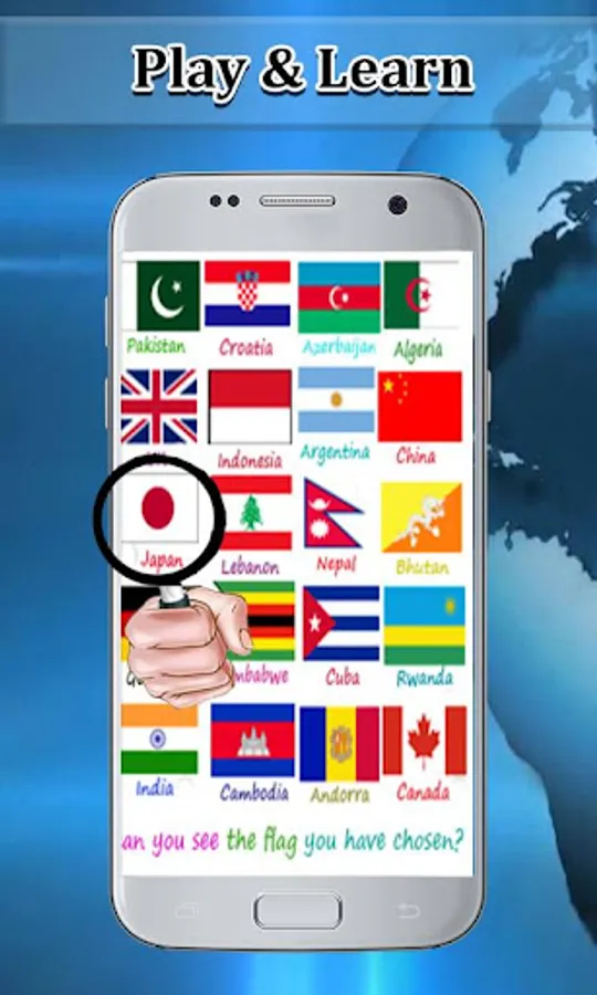 you will quickly learn about countries, flags of the countries, capital city, flags colors,
