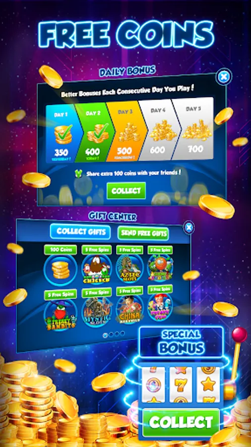 - Share Bonuses and Gifts with friends!