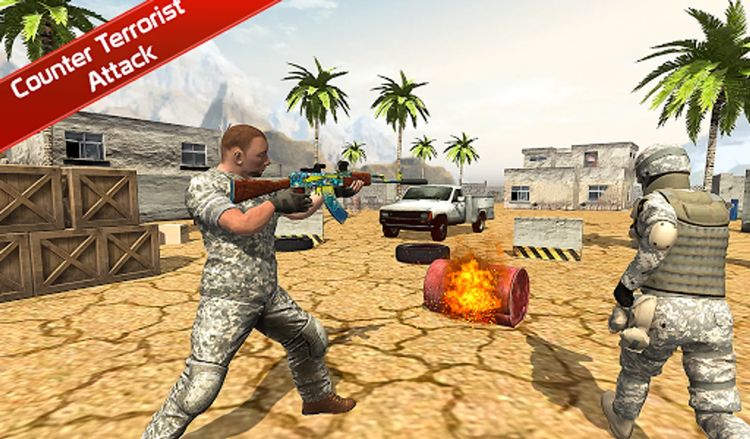 Gaming solutions studio presents the Counter Terrorist Attack Action Shooting 2019 with lot of action and adventure this free shooting game season. Welcome to new shooting game where you have to attack with two of your soldiers. You are a warrior against the militants of ruthless terrorist attack in this action counter terrorist operation. You can play this action (Terrorist Attack Action Shooting 2019) game in both fps shooting & tps shooting modes. We made endless missions that is why this assault fighter strike game stands among the top free action games 2019.