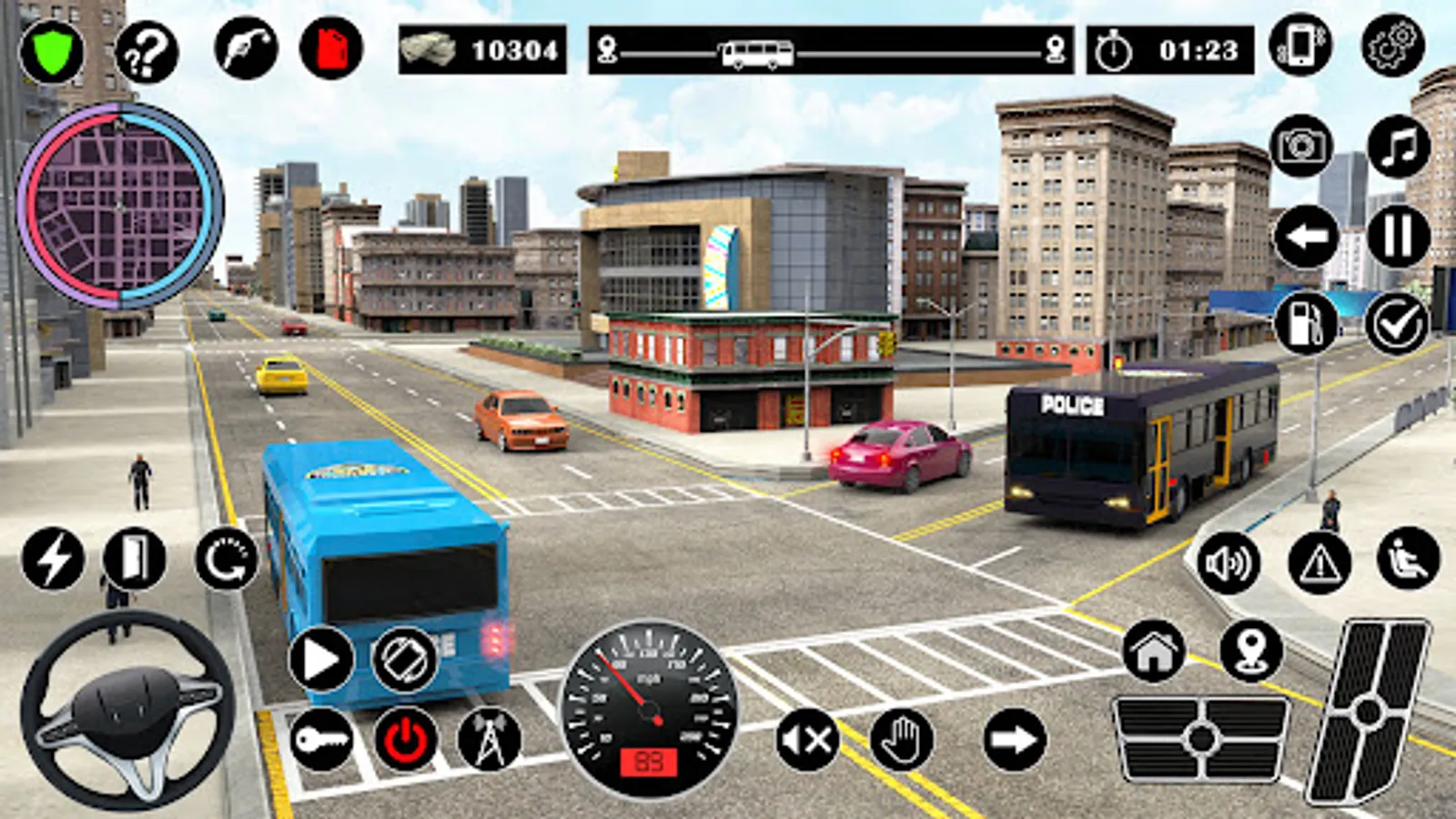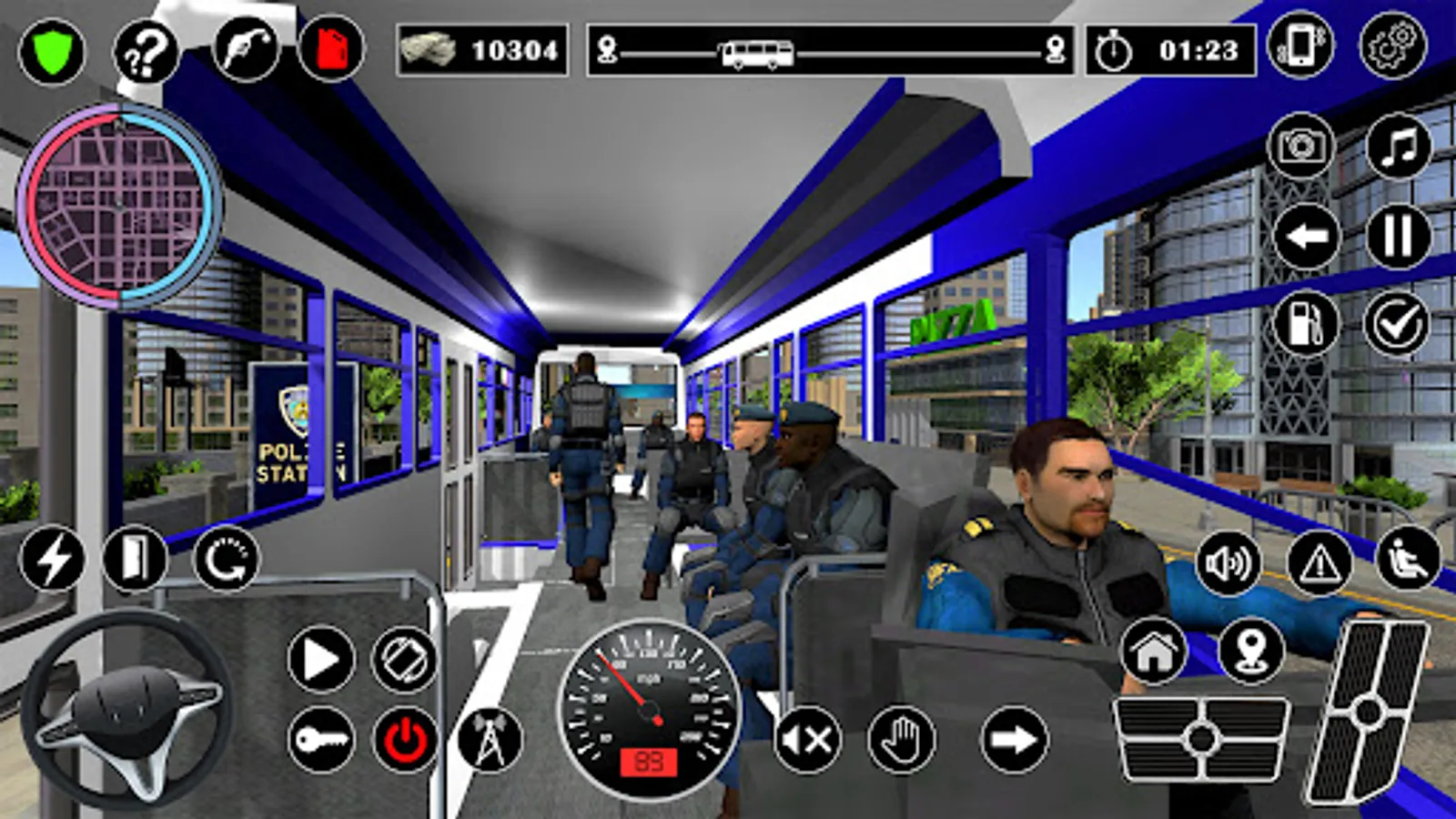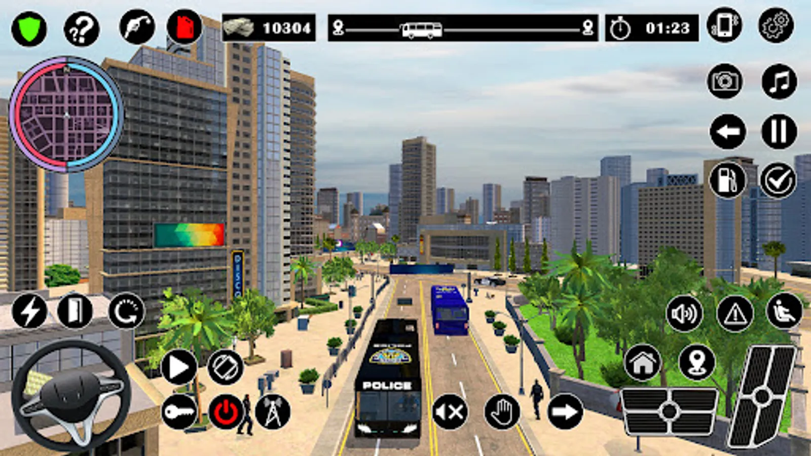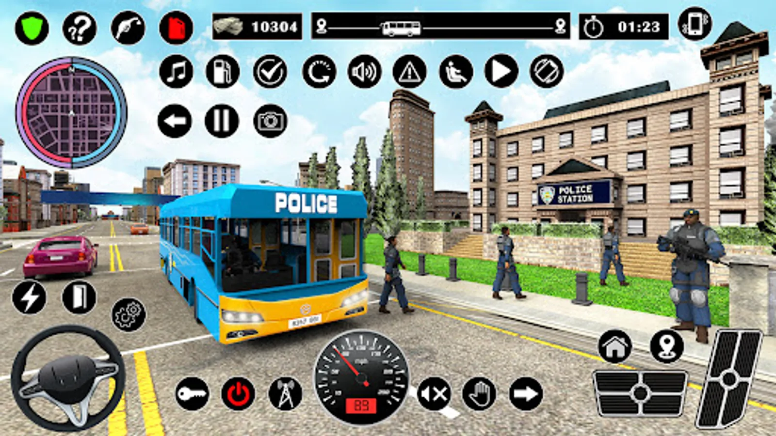 Police Bus Driving Simulator: US Cops Coach Drive is a very addictive bus simulation game due to easy & smooth controls with the amazing bus drifting & bus racing. More than 3 luxury police buses are added in the vehicle store. Get your favorite cops transport bus to drive in the city to perform your duty of police staff transport. Get behind the wheel of your favorite cops coach & patrol in the city according to the navigation map on your screen to track the destination points. After each ride, you will be awarded coins. You can upgrade engine efficiency, steering grip, wheel grip and brakes of your current speedy bus or can buy the upgraded one from the vehicle store. Let' roam in rush street and busy traffic road on the speedy bus with smooth & easy controls as bus simulation game. Map guided route map in added in this city bus simulator to help you to navigate your destination points to pick & drop the police officers & park precisely as the rush bus driver.