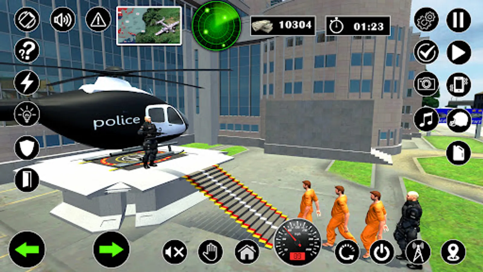In this flight simulator game more than 10 professionally designed challenging levels are added to test your police helicopter air flying skills between high roof buildings. Each transporter helicopter prisoner transport mission is totally different from the previous one contrary to the typical helicopter game. A lot of modern police helicopters collection is added in this police helicopter prisoner transport game. Be a trained helicopter pilot & Just select your favorite police helicopter from the police air base, fly over the high roofs buildings after the pilot initial training, chase the criminals and prove yourself best duty police helicopter pilot like latest helicopter games.