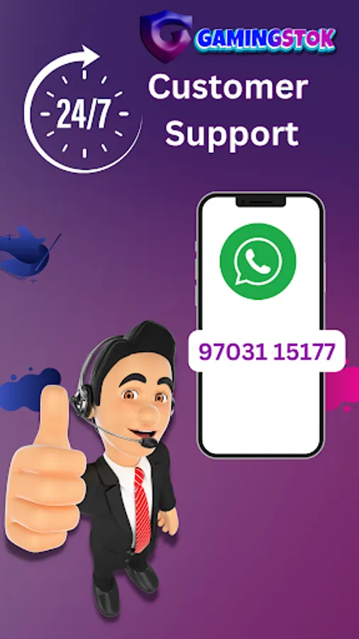 7. 24*7 Customer Support: Always got your back through in app whatsapp chat and support@gamingstok.com