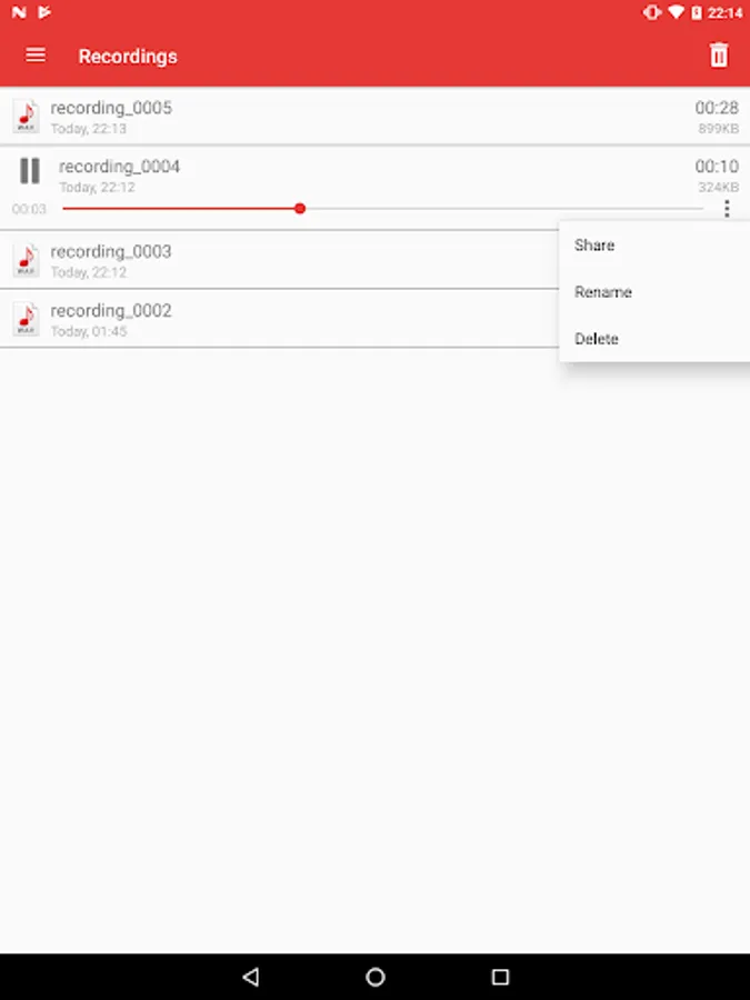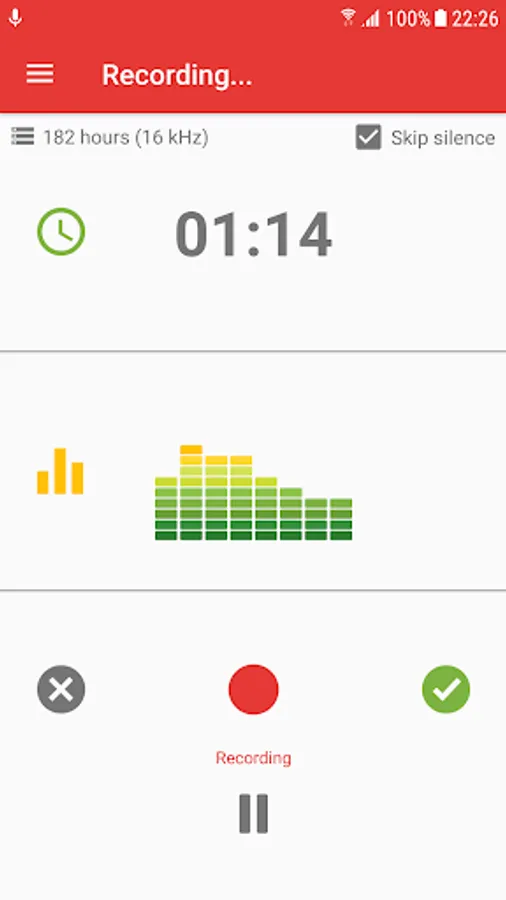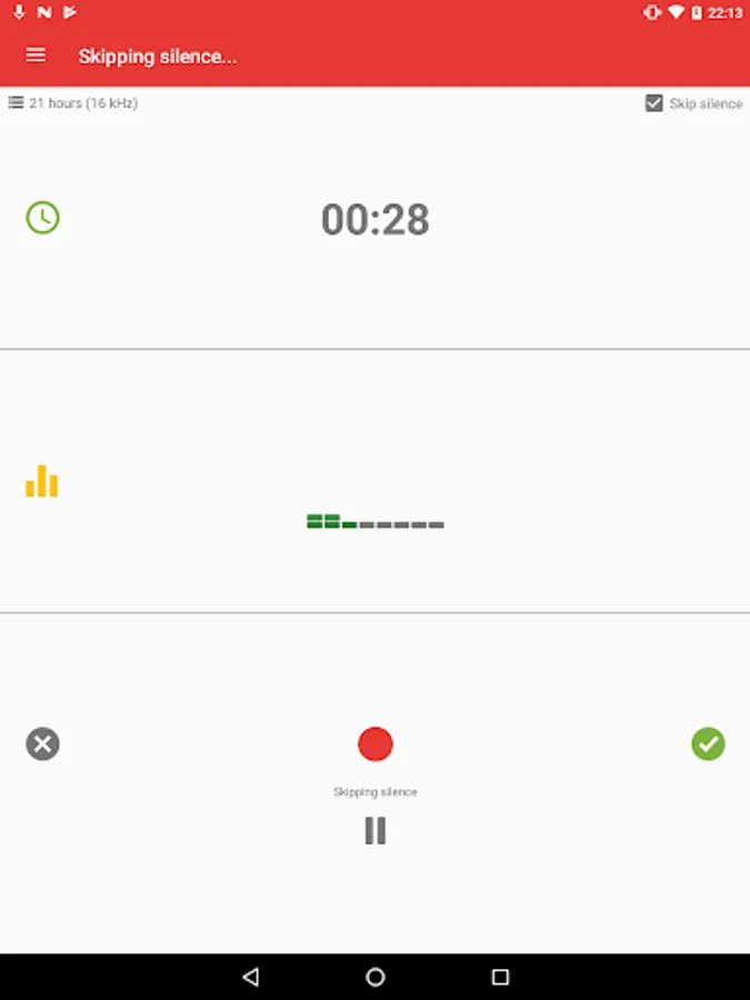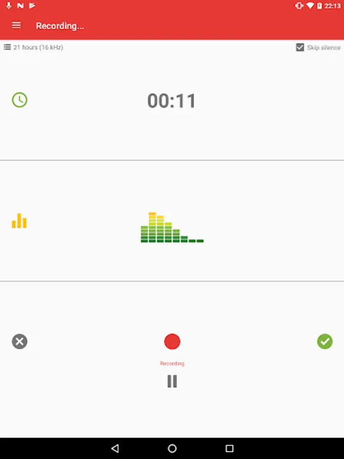 This app makes it easy to record audio using your Android smartphone or tablet. Easy to use interface gives you all the options you would ever want or need from a sound recorder such as record, stop recording, pause, skip silence, recording settings and many other functions.