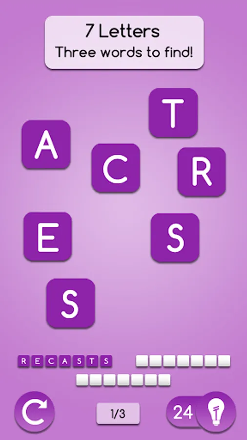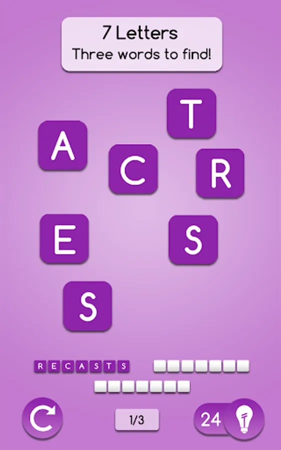 - If you get stuck, use your collected hints to reveal a letter in one of the words to find.
