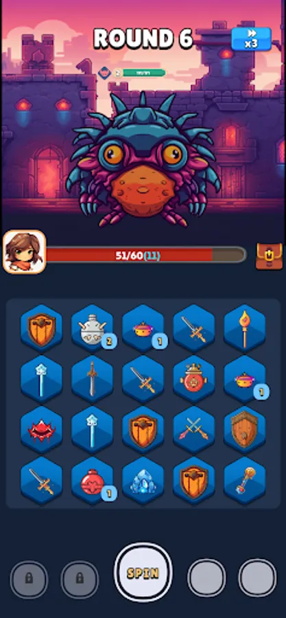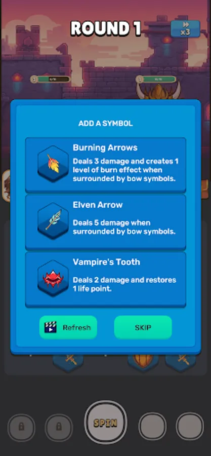 Spin the roulette wheel to obtain different symbols and attack enemies!