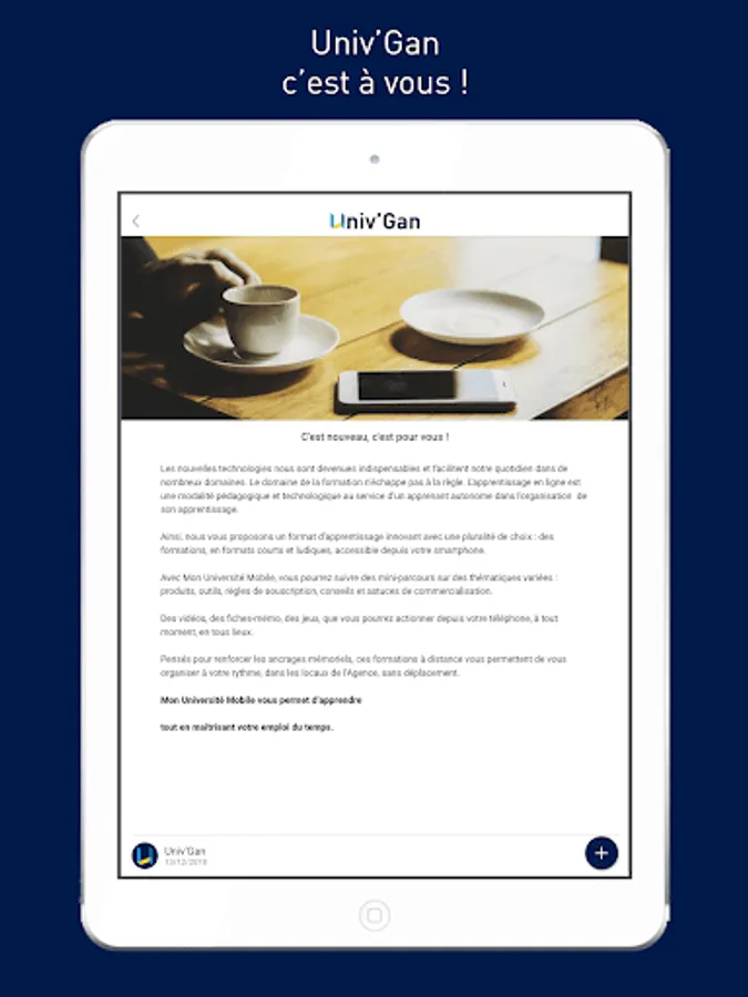 This application is intended for general agents and employees of Gan Assurances. She will accompany you to update, enrich and perfect your knowledge of products, tools or processes of the company.