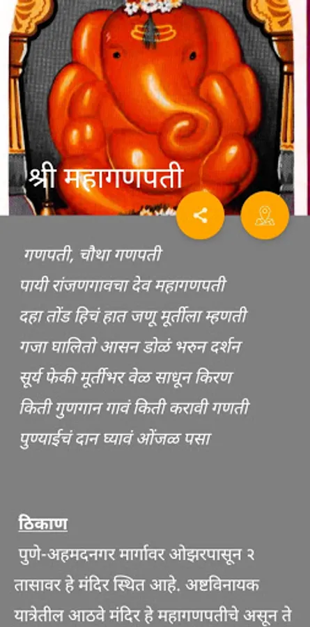 The word Ashtavinayak is formed by combining the two words 'Ashta' and 'Vinayak'. Ashta means eight and Vinayaka means our beloved deity Ganapati. Ganapati is first worshiped before beginning any auspicious work. Because this Ganapati, the deity of knowledge, provides prosperity by removing all obstacles. These temples are situated in a scenic place. The architecture of all these eight temples is very excellent and they are pleasing to the mind.