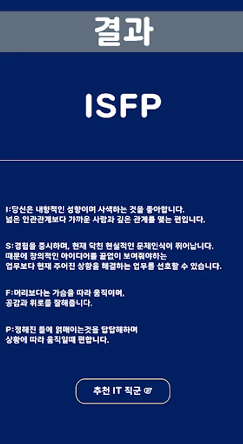 It is an application that introduces IT jobs according to personality types.