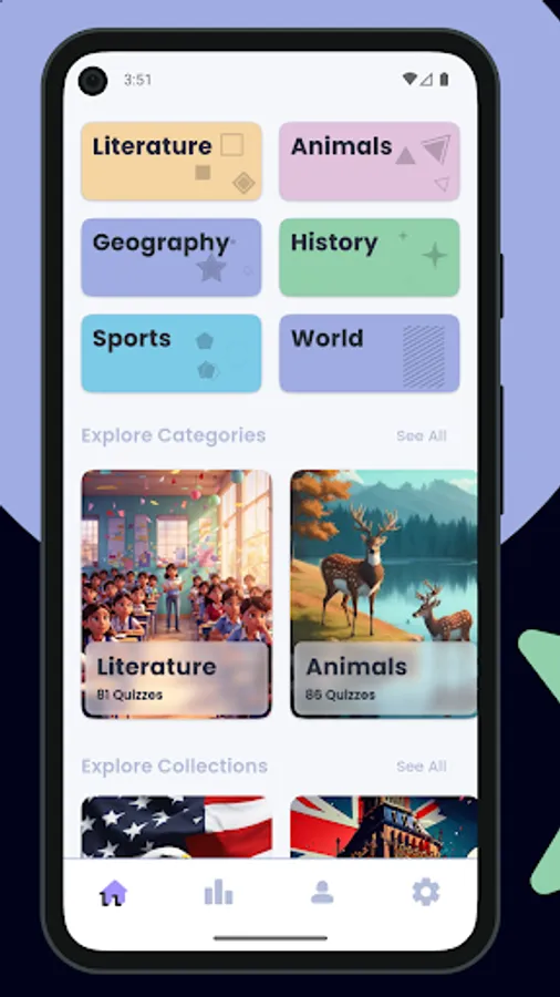 Put your knowledge to the test with Trivia Kingdom, the ultimate quiz game with over 32,000+ questions in a variety of categories like sports, history, geography, world, math, science, and many more. and With our collections, like the USA collection, you can explore hundreds of questions related to the United States.
