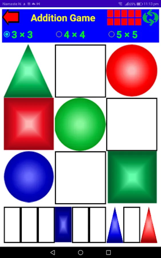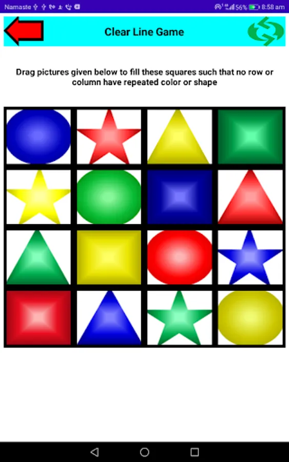 4. Clear Line Game: This is a game of arranging different shapes of different colors in rows and columns in such way that neither any row nor any columns have the same shape or same color.