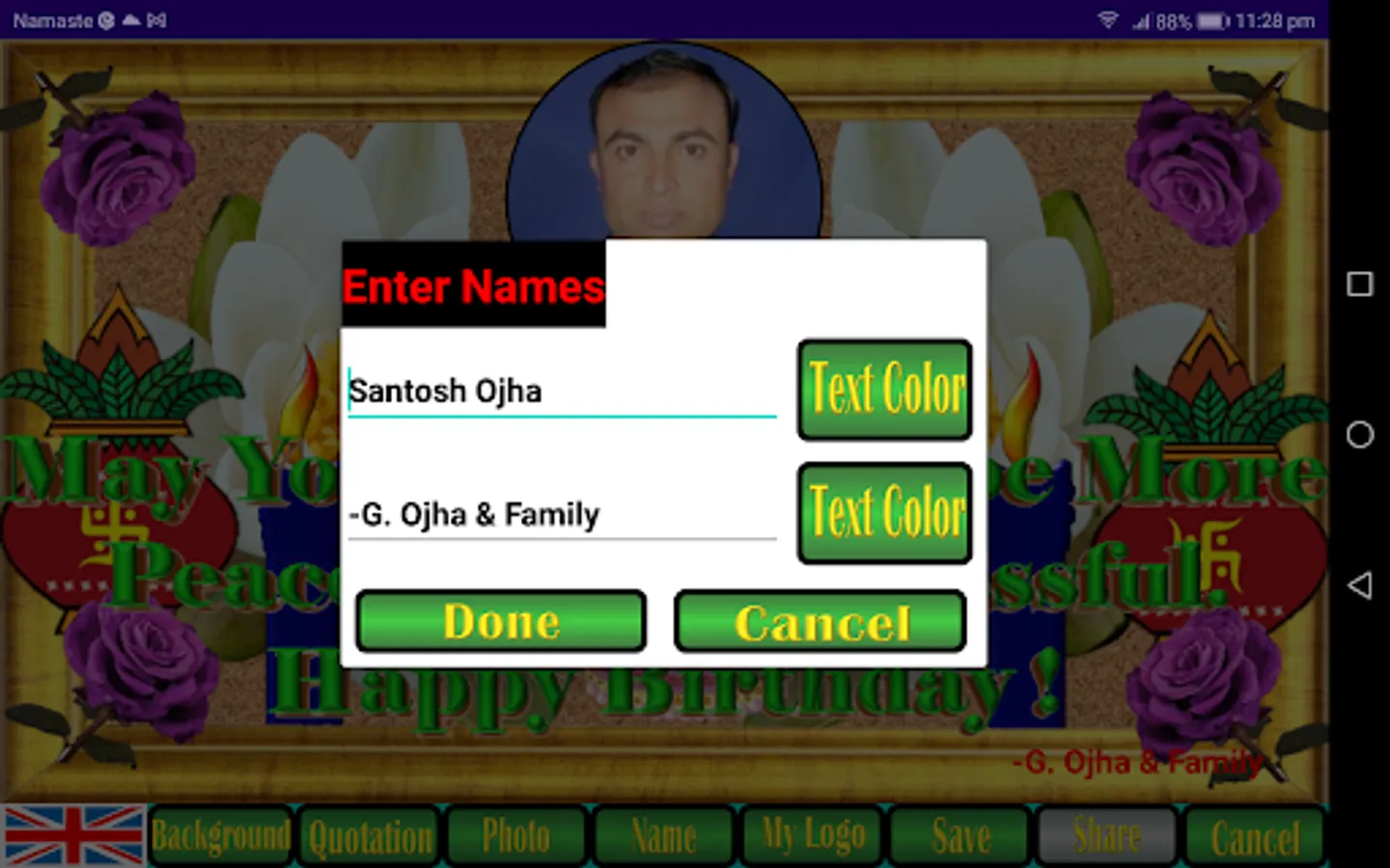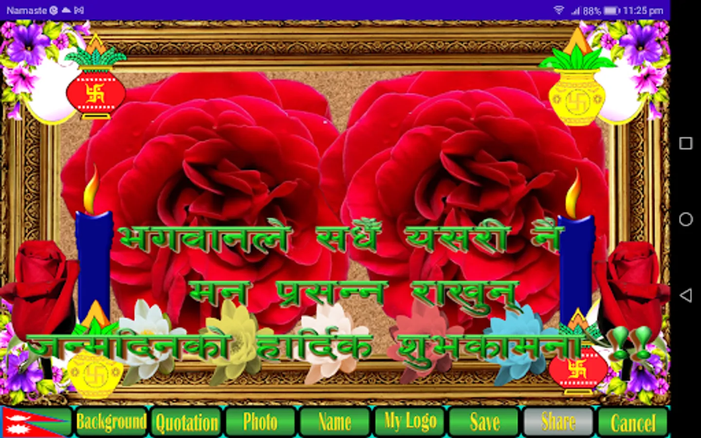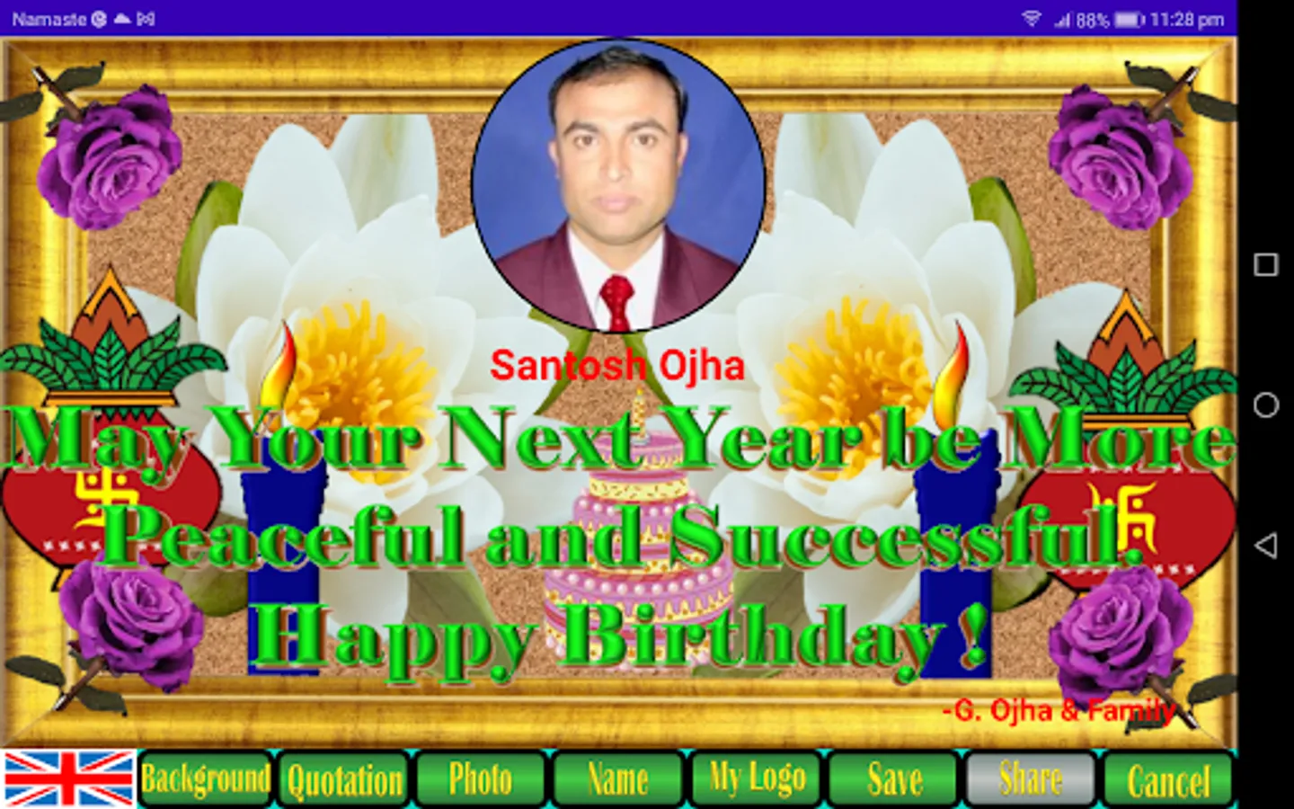 9. The save button will save your prepared card in default download folder in jpg format which can be shared to different social media by clicking on share button or from download folder.