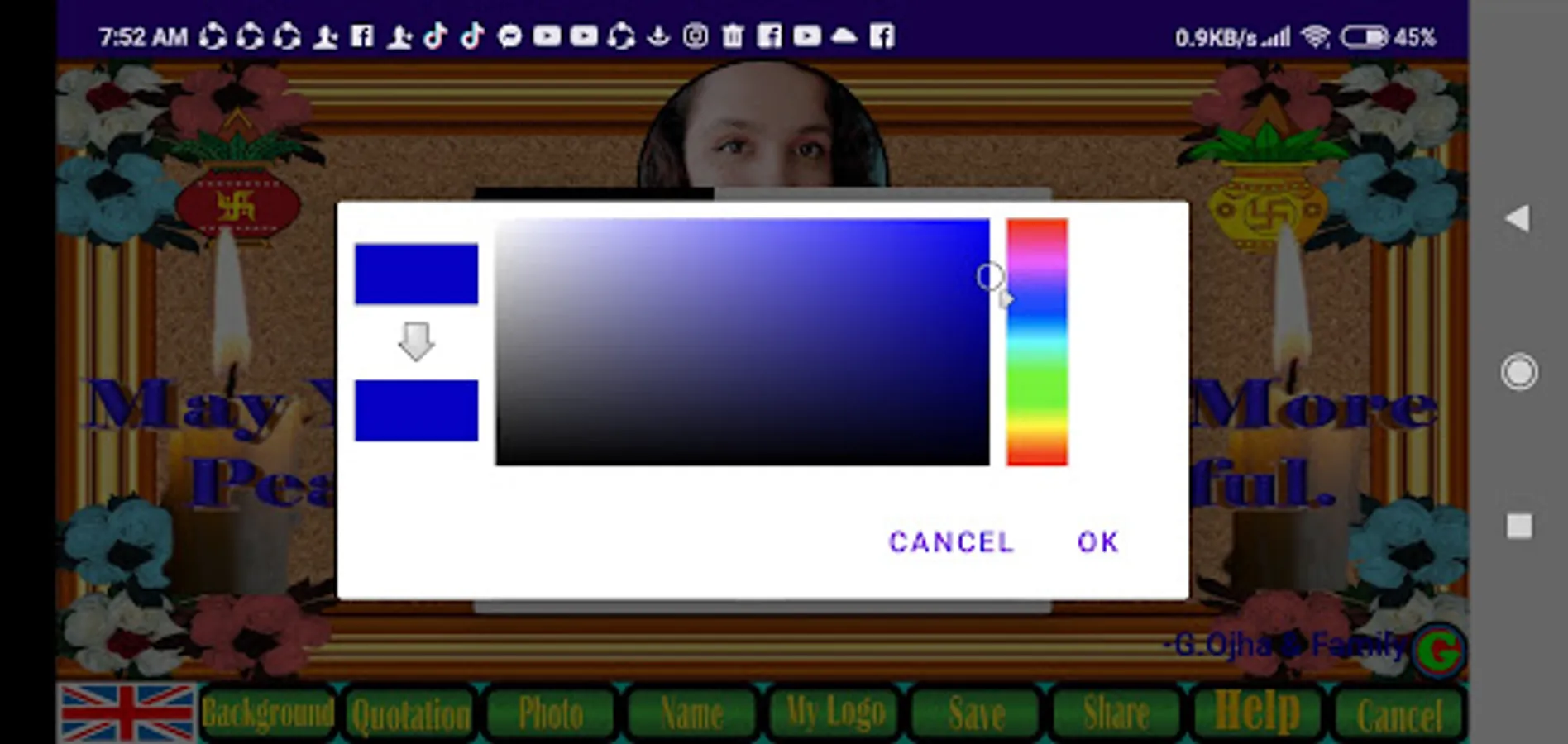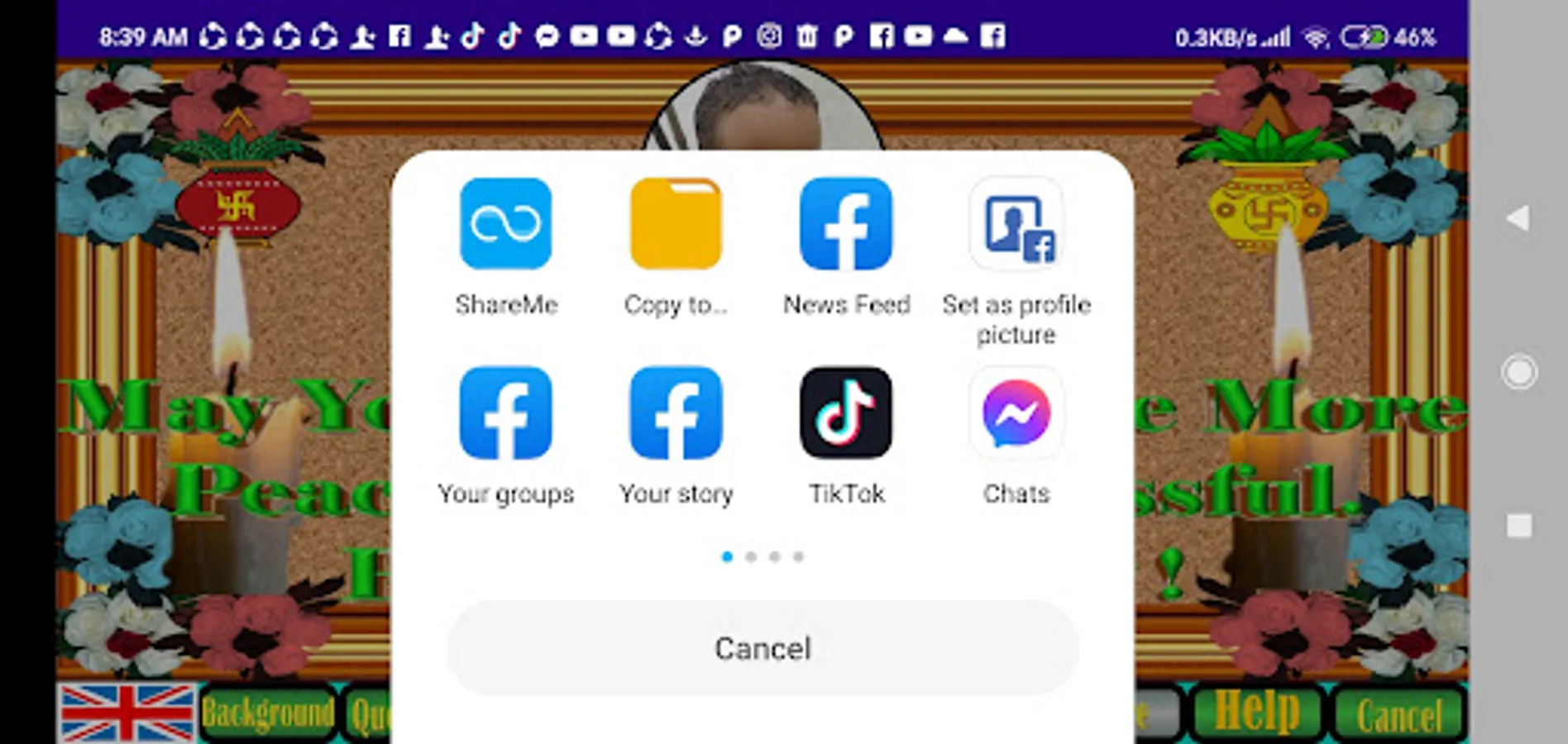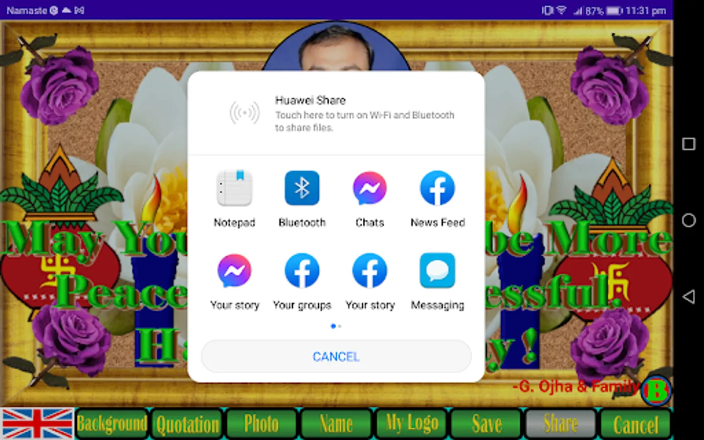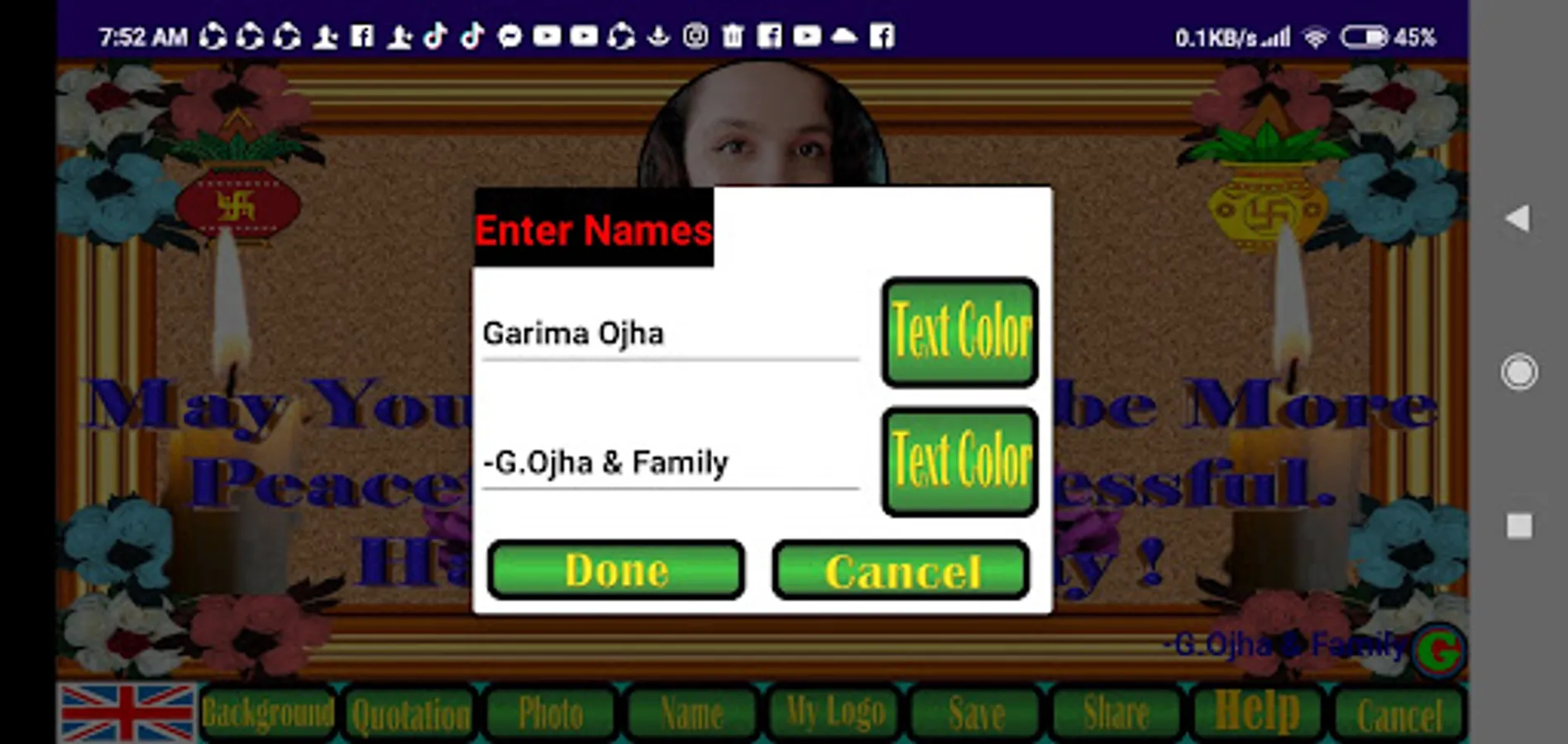 9. The save button will save your prepared card in default download folder in jpg format which can be shared to different social media by clicking on share button or from download folder.