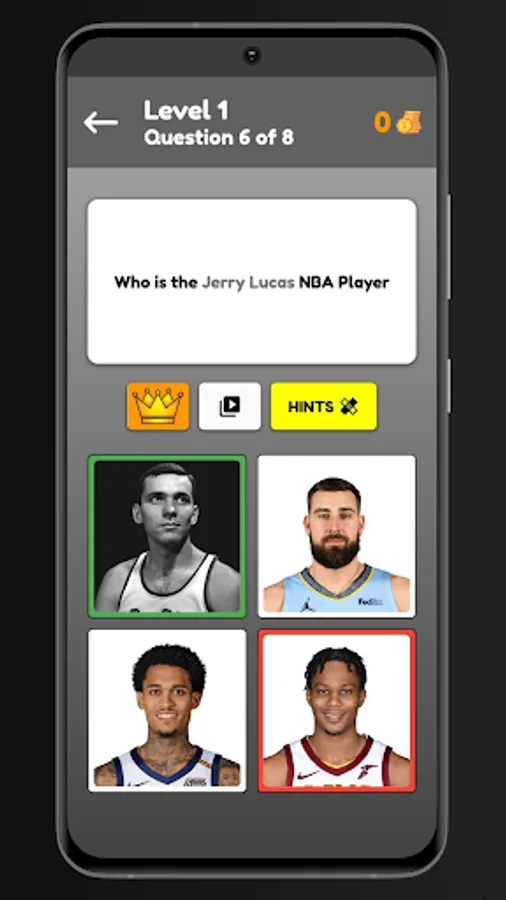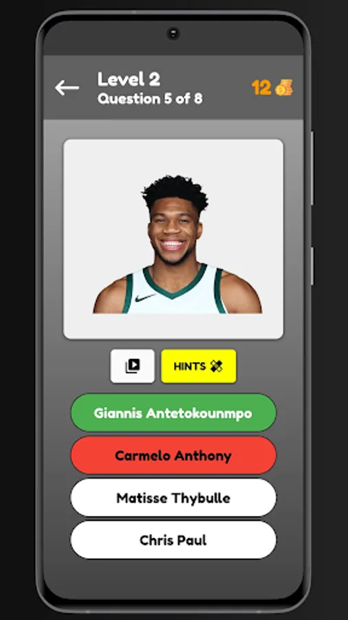 Do you like basketball, this is a nice game for you. The game consists to guess the player in the picture and you win the coins. Otherwise, watch the video or share the game and you win the coins. The coins help you to resolve the question if you don't have an idea of the name of the player. you take hits too. Is a very nice game and very easy!