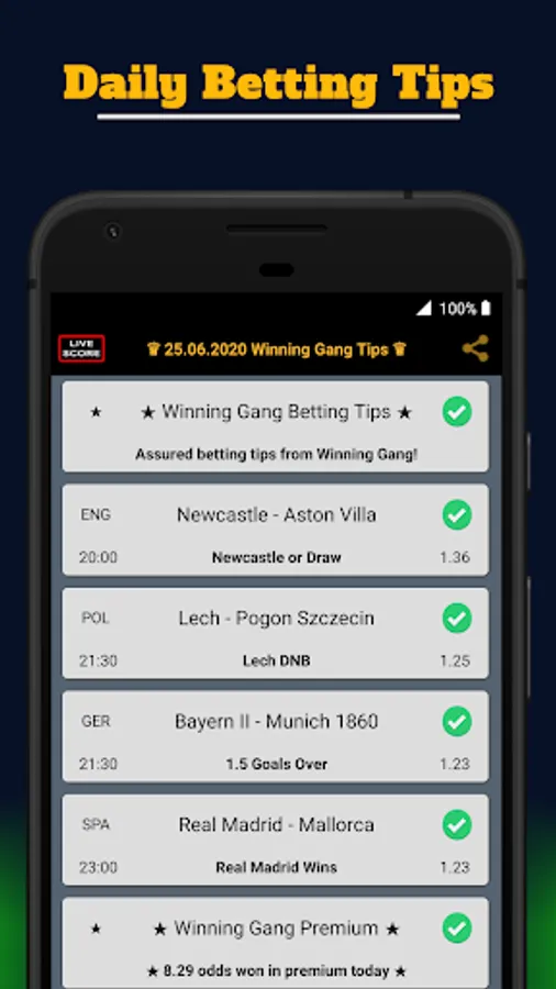 Winning Gang Betting Tips & Predictions provides daily reliable sports betting tips and accurate acca bets including sports like football, basketball, tennis and ice hockey. If you are looking for a daily reliable sports bet tips & predictions app we are here to gladly help you out with our betting advices.