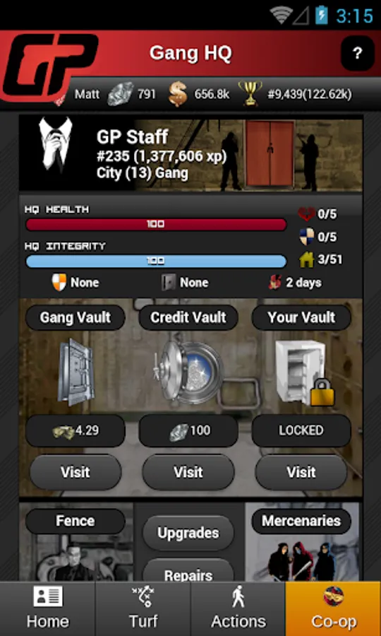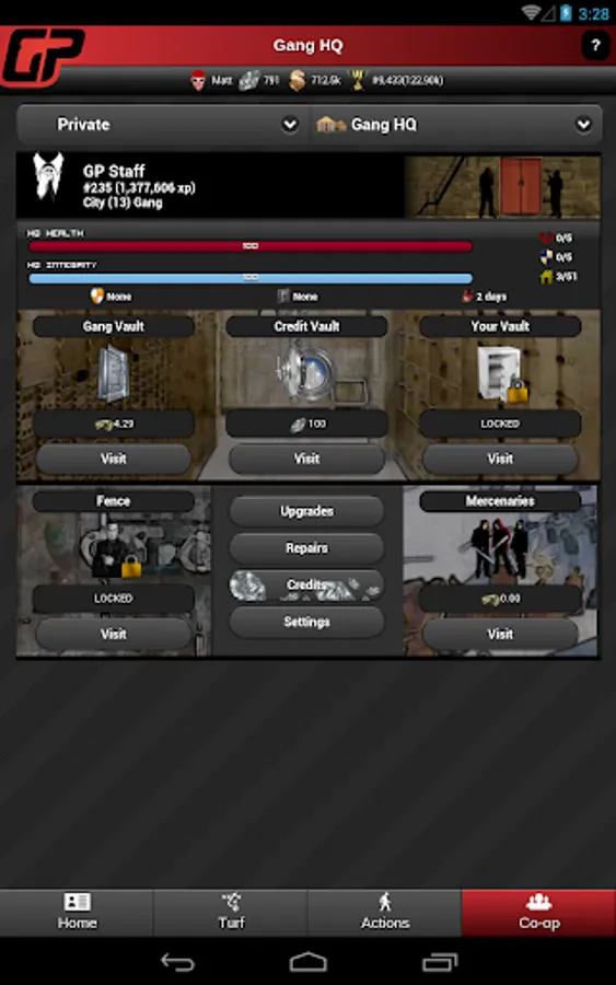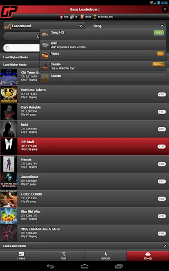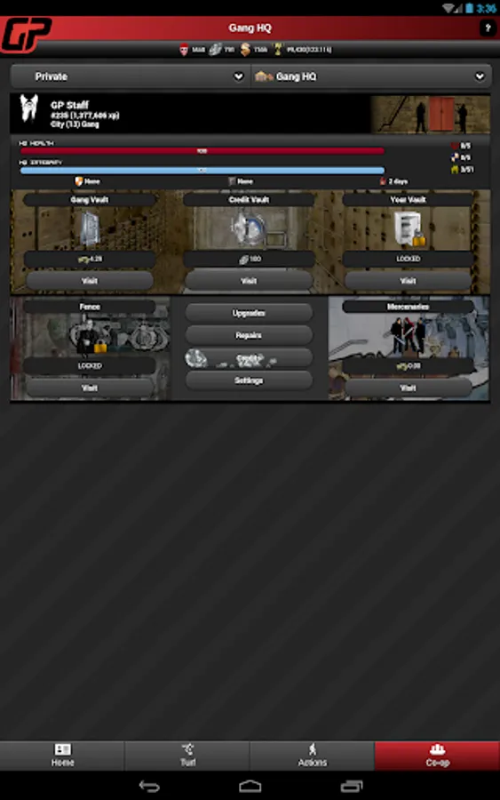 • Create or join a gang and build your HQ, properties, score and raid other gangs for spoils.
