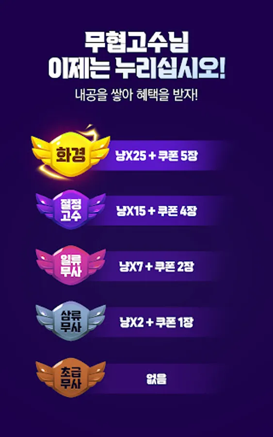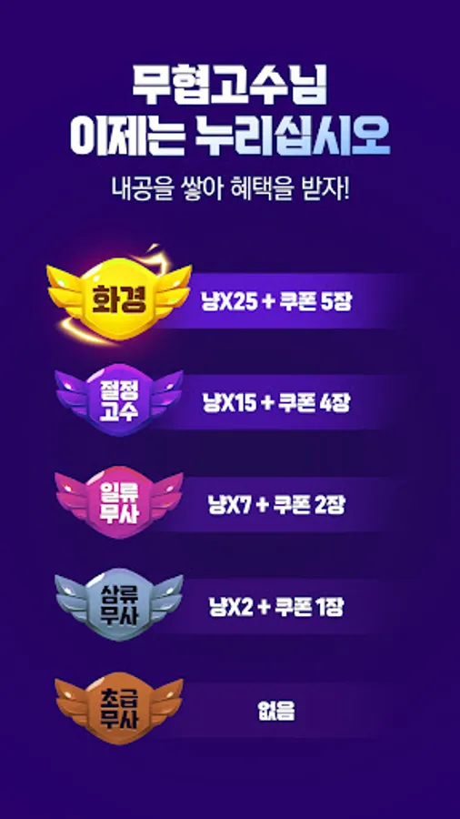 Systematization of a total of 5 grades: Beginner Samurai, Third Class Samurai, First Class Samurai, Epic Master, and Hwagyeong