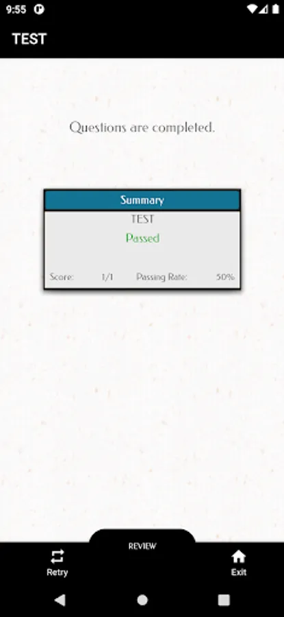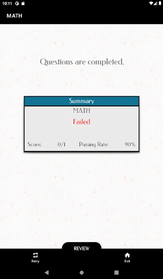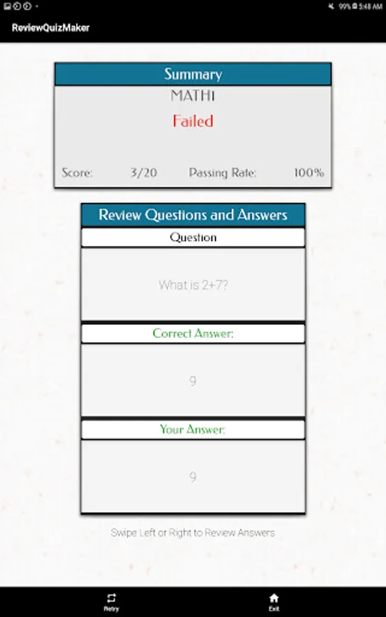 4. Once the Quiz is completed, there will be a summary of the Score and