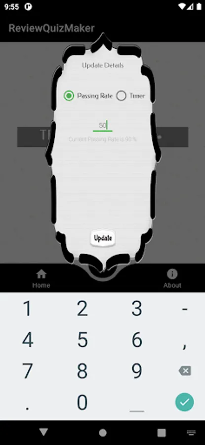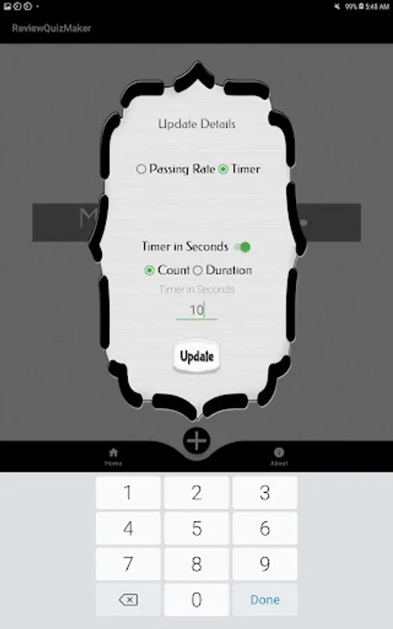 - Click Update to update the Passing Rate or Add Timers on the Quiz