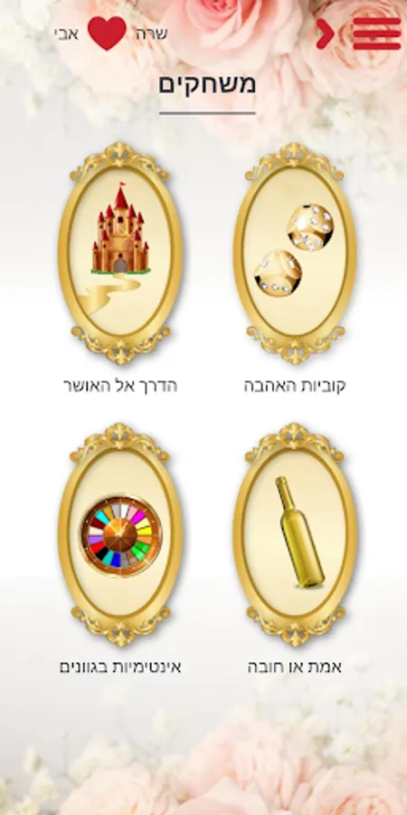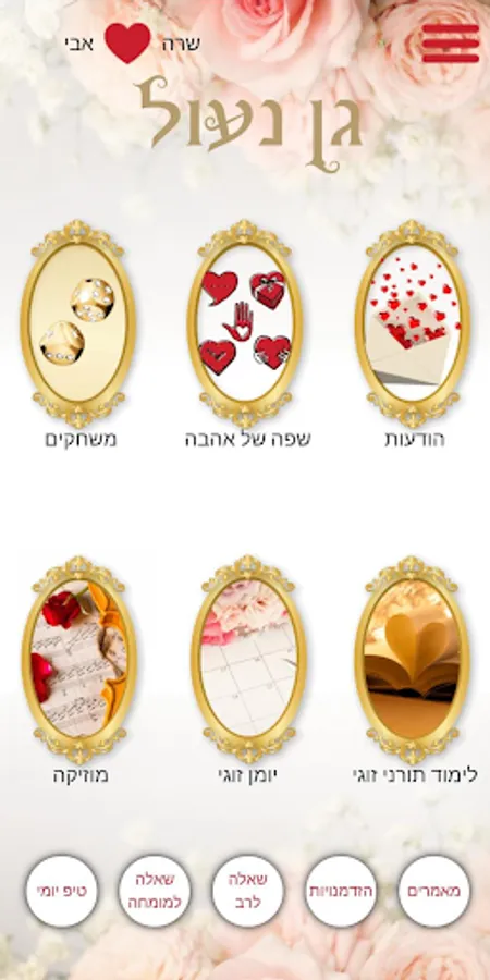 Suggestions for intimate games that will make any "foreplay" hot with a lot of passion. Relaxing music or rhythmic double diary where you can update important dates, invite to a double date, update the husband on the upcoming mikveh and more ... In the app you will identify what your love language is through a smart questionnaire, the app will help your partner speak this language and give you More! In the app you can send discreet and confidential messages to each other The messages are saved only within the app, login by password. Do you have a question for the rabbi? Do you have a question for a sexologist / couple counselor / and more? You can ask through the app (additional token cost)