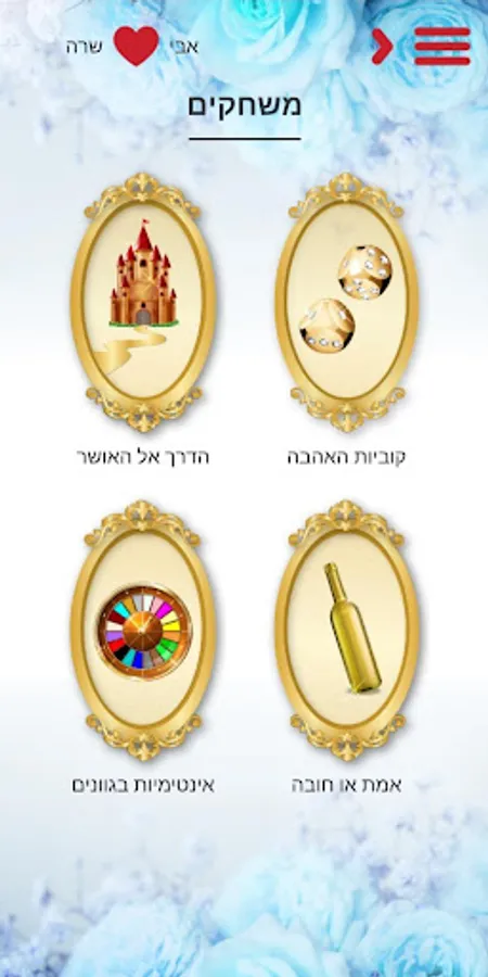 Intimate games suggestions that will make any "pre-game" fiery with a lot of passion. Relaxing or rhythmic music Double Diary There you can update important dates, invite to a double date, update the husband about the impending hope and more ... More! In the app you can send discreet "intimate" messages and sponsorships to one of the two messages are saved only within the app, by password. Do you have a question for a rabbi? Do you have a question for a sexologist / spousal consultant / expert? Can be borrowed through the app (at extra cost)