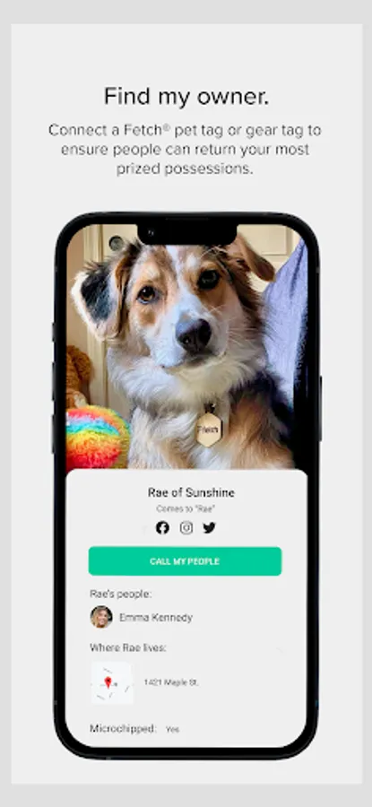 • GIVE PETS A VOICE: Tap a Fetch® Pet Tag with your phone and you'll notify that pet's owner of their whereabouts. You'll also get instant access to the pet's human contact and vet records.