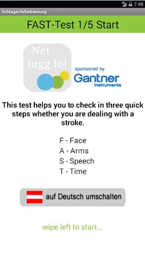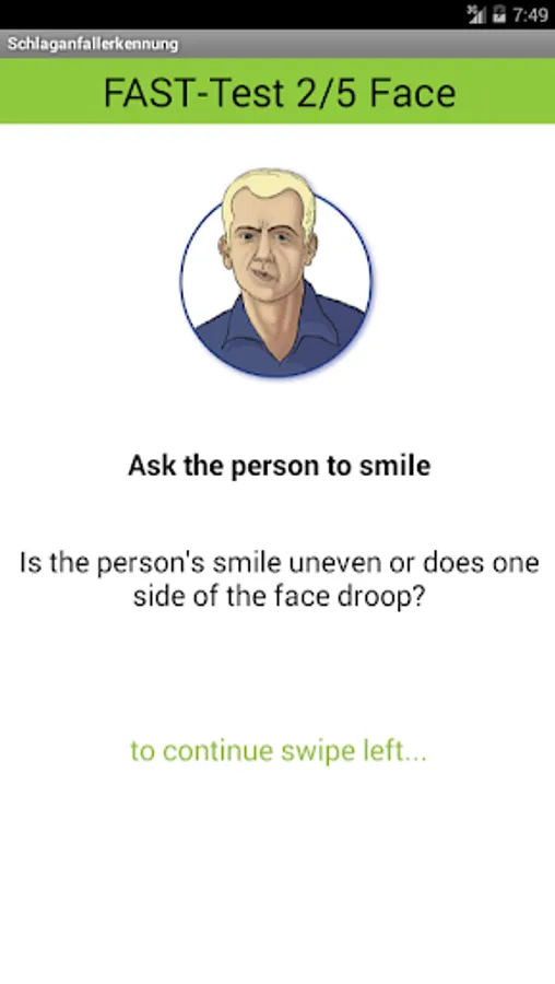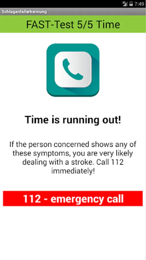 This App helps you to check in a few quick steps whether you are dealing with a stroke. You are guided audio-visual through the test. Afterwords it's possible to make an emergency call.