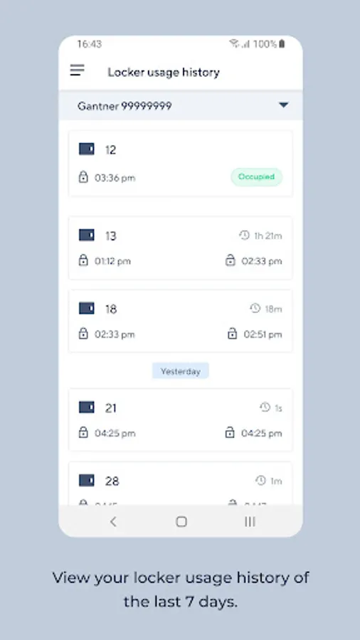 • Locker usage history: You can get an overview of your locker usage history at different organizations from the application.