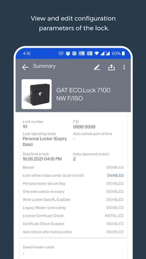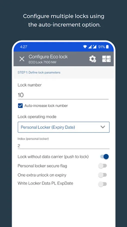 The Mobile Lock Administration (MoLA) app uses NFC to provide you a fast and convenient way for configuring Gantner Eco-series battery locks. No cords or laptop required to configure locks.