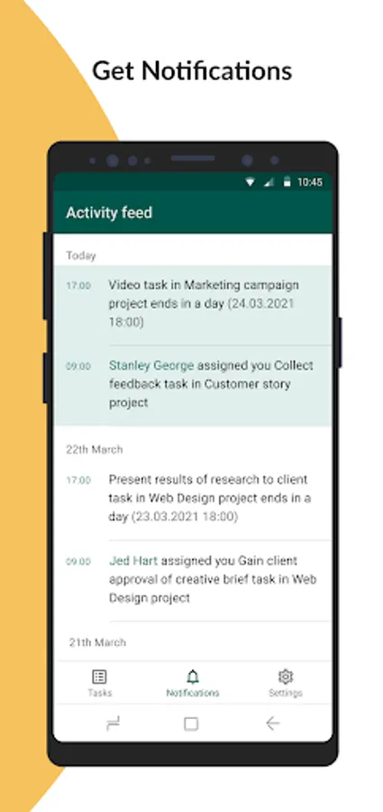 Receive notifications, manage tasks, log your time on the go, and never miss a project update.