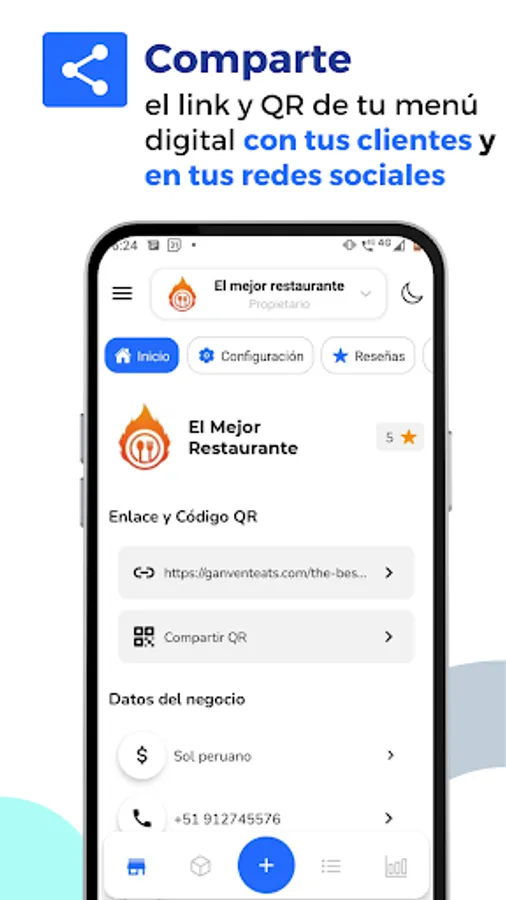 With Ganvent Eats, you will have everything your restaurant needs, for example, you can create and customize your digital menu, manage your orders, view your restaurant's statistics, share the link and QR of your digital menu, work as a team and many other things. further.
