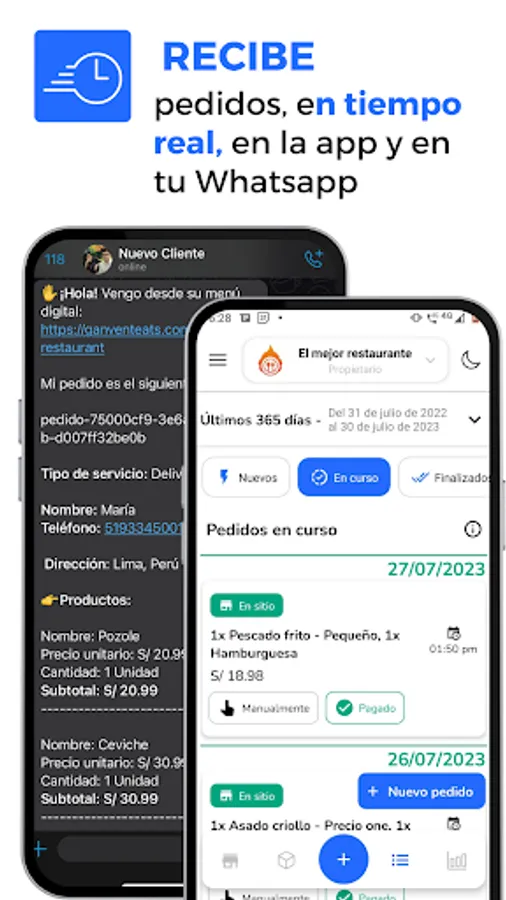 »Receive orders in real time. You can view the orders that your customers place on your digital menu in the app and on your WhatsApp.