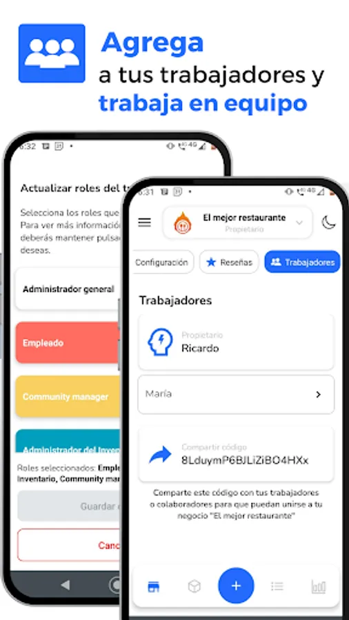 🧑Work collaboratively in the cloud: We know that teamwork is essential for the success of your restaurant, therefore, at Ganvent Eats you can: » Add your workers to your restaurant to work as a team and view the orders they place in real time they attend and/or register