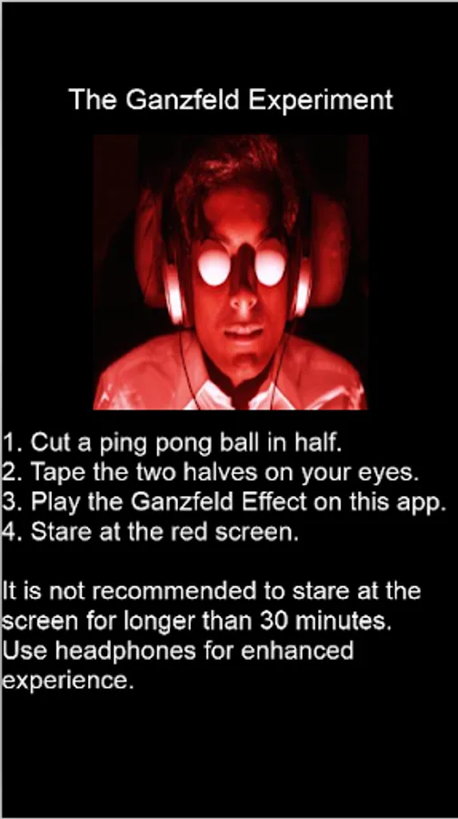 1. Launch the app and click on "The Ganzfeld Experiment" button.