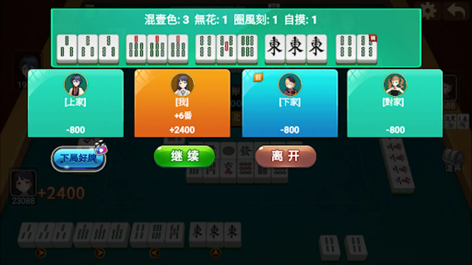 For detailed Hu type, please check the Hong Kong Mahjong rules in the game help