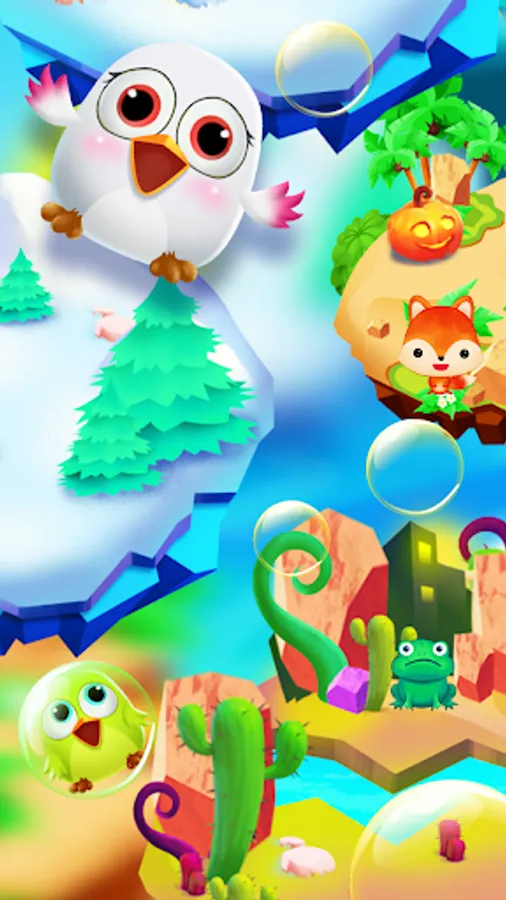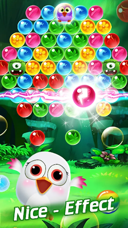 🐥 Shoot three or more bubbles of the same color on the screen to create powerful explosions