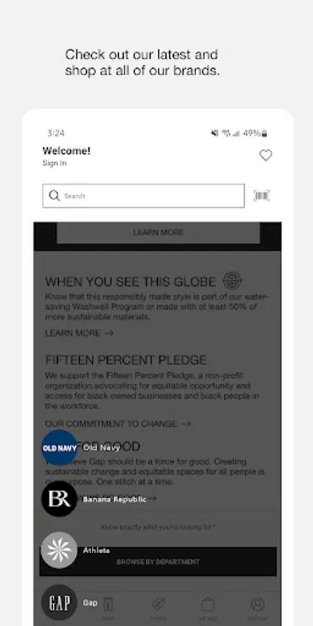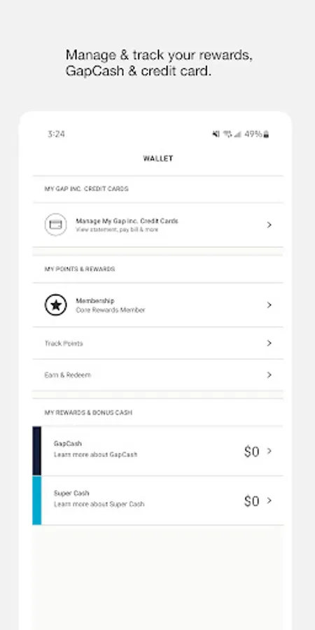 Save money: Easily find and apply our best offers and promos directly on the app. Access and redeem your Rewards, GapCash, and more with just a few taps.