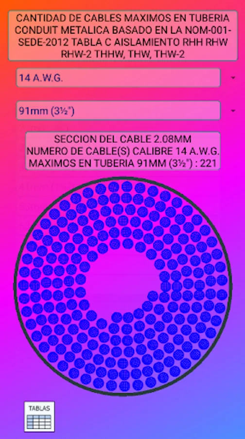 App de Calculo de Conductores eléctricos en Tubo conduit de acuerdo a la NOM basado en el Apendice C