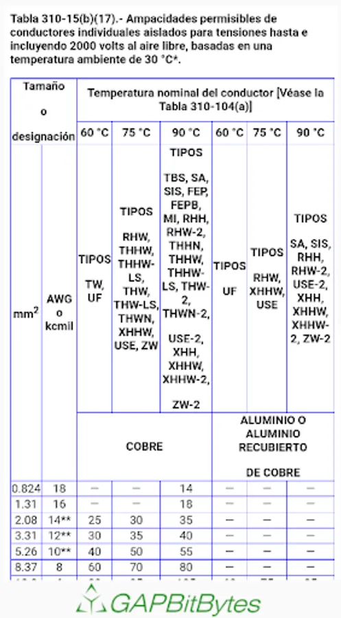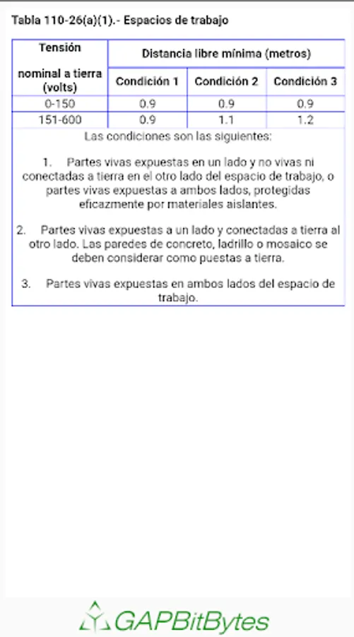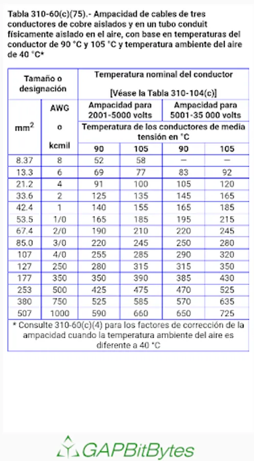 The following Application is a compilation of Tables of electricity topics, published in the Official Mexican STANDARD NOM-001-SEDE-2012 Electrical Installations (use) and the app only recreates them for quick consultation in the field of work, the application of the tables is the sole and total responsibility of the user.