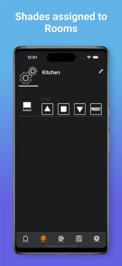 Easily control your shades from the room page with control for UP, STOP, DOWN, and PRESET position.