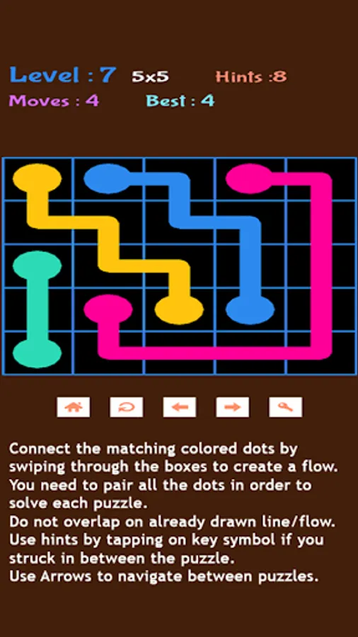 Connect the matching coloured dots by swiping through the boxes to create a flow line.