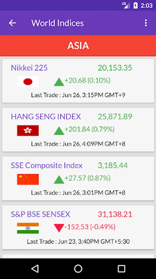 -> Major world indexes from Europe, US and Asia at one place