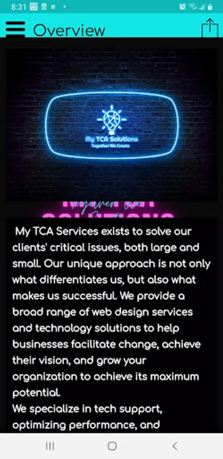 My TCA Solution's services exists to solve our clients' critical issues, both large and small. Our unique approach is not only what differentiates us, but also what makes us successful. We provide a broad range of web design services and technology solutions to help businesses facilitate change, achieve their vision, and grow your organization to achieve its maximum potential.