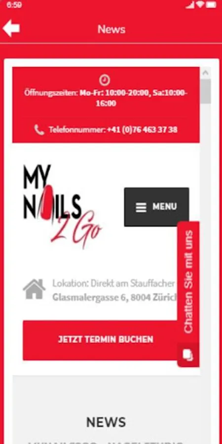 Gel-oder Acryl Neuset Nägel, Shellac, Maniküre oder Pediküre Termine kannst Du nun einfach in der MyNails2Go App online buchen. Der Nagelsalon befindet sich zentral beim Stauffacher in Zürich. Zudem bietet die App eine online Loyality Funktion, bei welcher Du bei jedem Besuch Punkte sammeln kannst und Dir dann Vergünstigungen bringt. Des Weiteren erfährst Du in der Newsselektion das neuste aus der Welt der Nailfashion.