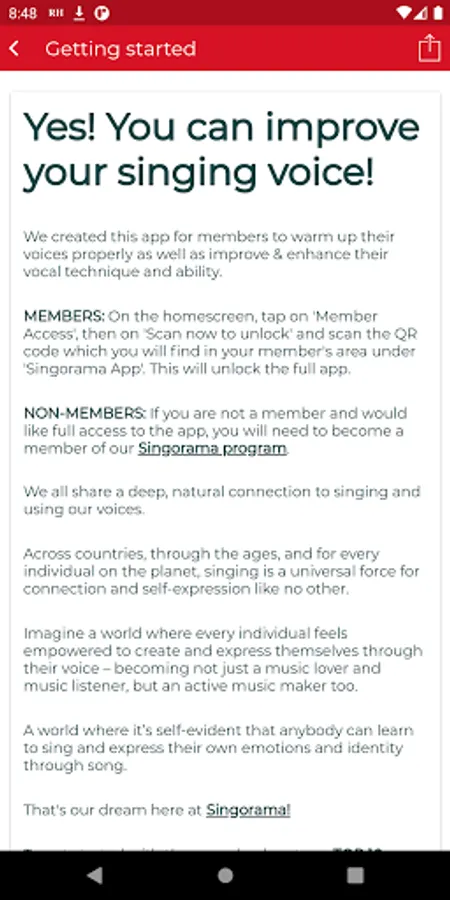If you are not a member and would like full access to the app, you will need to become a member of our Singorama program.