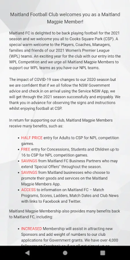 The Mailand FC App is for players, family and supporters of the great Maitland FC. Keep up with the draws, results and tables for all our teams including the Junior Development League, NPL Youth, WPL (Champions!) and the NPL sides. Show the App at the gate and you will receive a discounted entry to all Maitland FC home games as well.