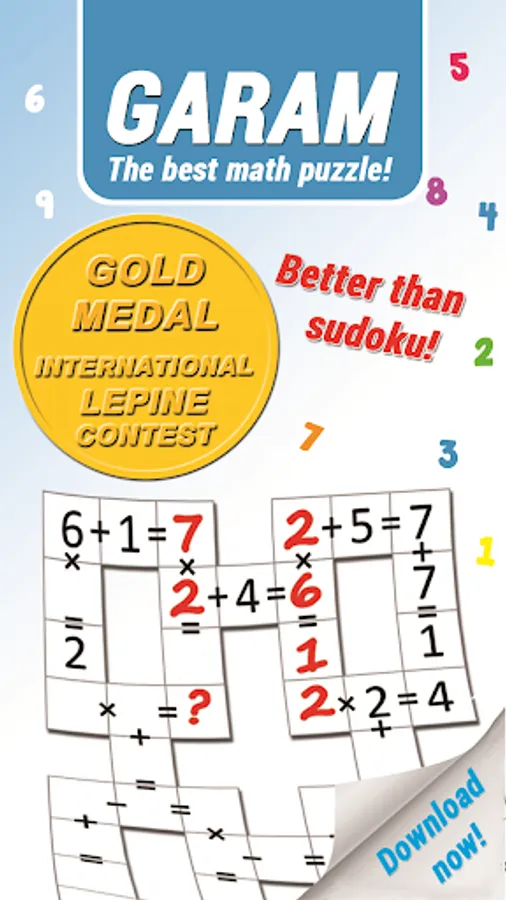 Garam is an addictive math logic puzzle with basic equations. It can be both easy for beginners or really hard for experts.