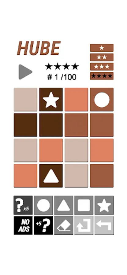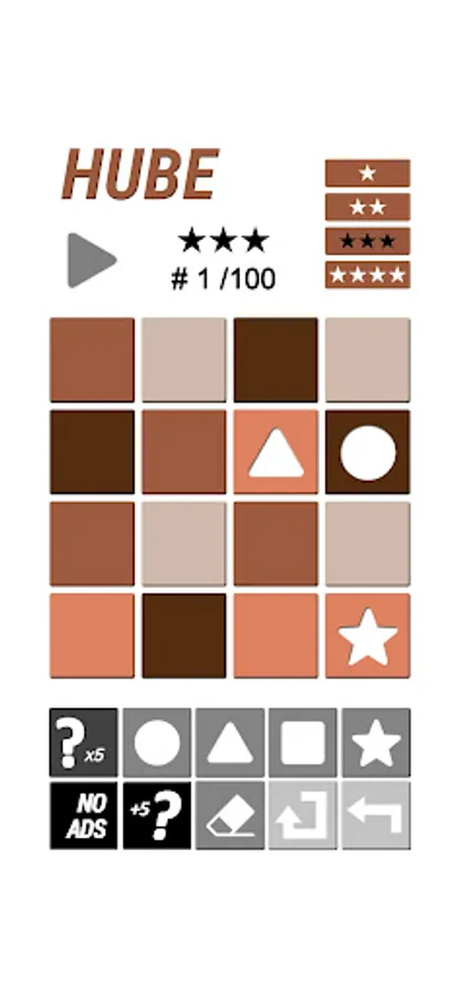 You will find 400 puzzles spread across 4 difficulty levels. If you like puzzle games and are looking for a new one, HUBE is made for you.