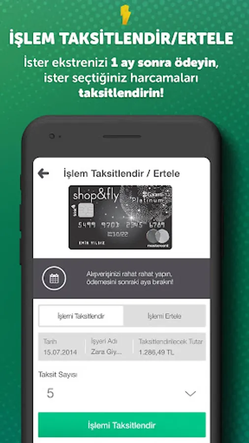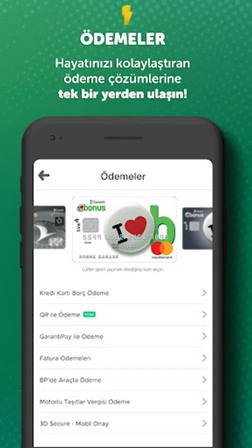 • In BonusFlaş, you can view the current transactions and statements of your Garanti BBVA Bonus credit card and other cards, and make your card debt payment. (Bonus, Shop&Fly, Miles&Smiles, American Express, Money, Flexi Credit Cards, Paracard)